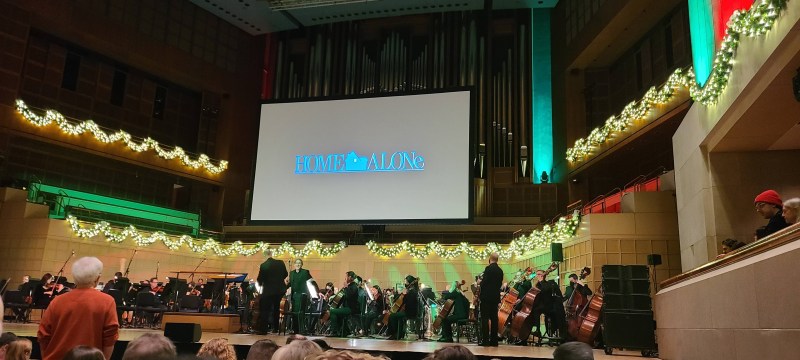 We did go for a walk, and Shane got to try out his new 360 camera (on the stick poking up in the picture). Some interesting imagery that way! Romola, Tanya, Stacy and I went to a very interesting concert. They played the movie “Home Alone” in the Myerson, with the Symphony Orchestra playing the music soundtrack. Most interesting!