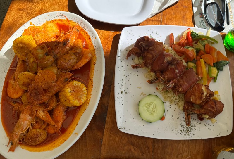 And to feature our food… the Sinafoense Restaurant and Bar serve the specialty of the area. That is a shrimp stuffed with cheese, wrapped in bacon, and baked. So good! We also had their Shrimp Diablo, shrimp, corn and potato in a fiery hot sauce.