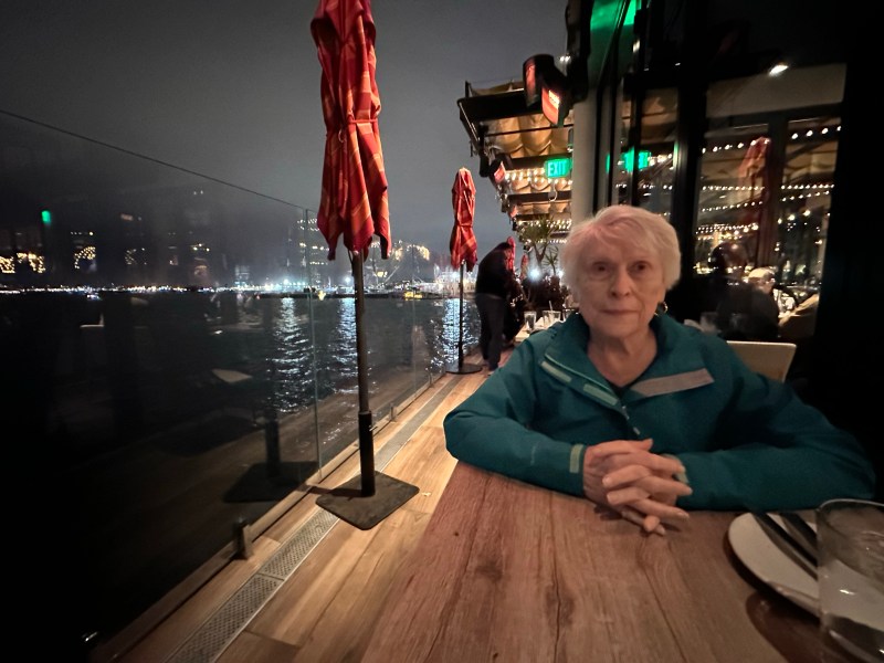We had an half hour wait and then they escorted us to our table… next to the ocean, on the deck. Maybe a nice place in a sunny day but this was cold! But dinner was very good, and we didn’t sit around very long.