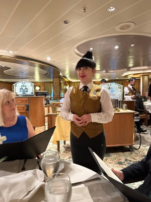 We had the best waitress on the ship serving our dinners. Olga kept us entertained and well fed during the cruise. She never hesitated to recommend the best dishes, we had some of the best on board dinners of all our cruises. In fact, we booked another Princess cruise in March.