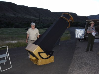 The program is put on by Niles and Bobby Allen, who are volunteers and put these shows on at different locations. Niles brought his big scope (see picture) which is quite amazing. Also, the Park provides several high quality night scopes to add additional capability.