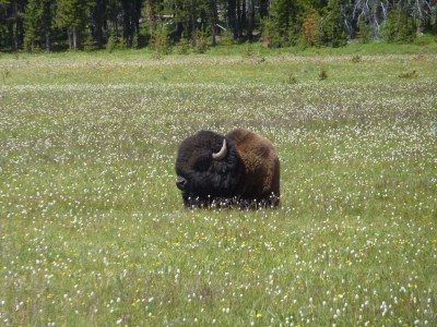 Obligatory bison photo, laying in the flowers