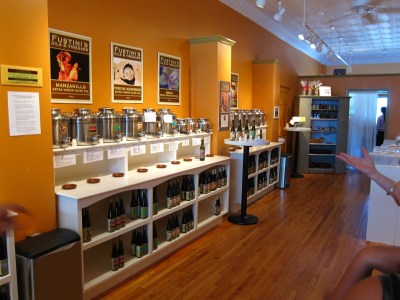Next, we went downtown, which has a surprisingly busy main street.  People walking and enjoying food and drink.  Lots of stores.  We ducked into a place called Phil’s, a cafe and chocolate store.  Not by accident, but because some locals recommended it, and they are know for their “soon to be famous bread pudding”.  We had a great lunch, but alas, the bread pudding would not be ready for another 45 minutes or so.  So, our waiter suggested we walk around outside, and be sure to visit the oil and vinegar store across the street.  Don’t worry about the bill, just pay when you come back.  So we did.