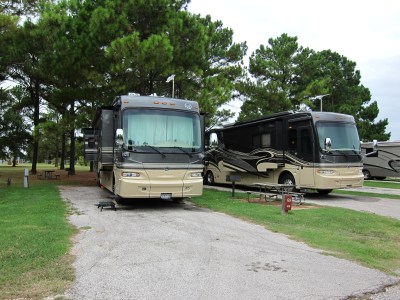Although there are quite a few motorhomes like ours on the road, we finally saw one that had exactly the same colors. Not only did we see one, he actually was in the space next to us! Good thing I didn’t come home late after a bender, I may have tried to get in the wrong one.
