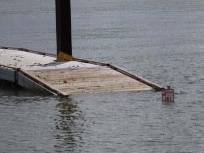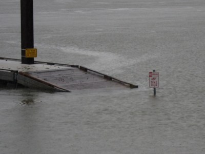 The heavy snowfall, big rainfalls, and late warm weather have caused significant flooding along the Columbia River.  Currently, it is about a foot above flood stage, and rising.  Here are two pictures I took of the same sign, one last week, one today.