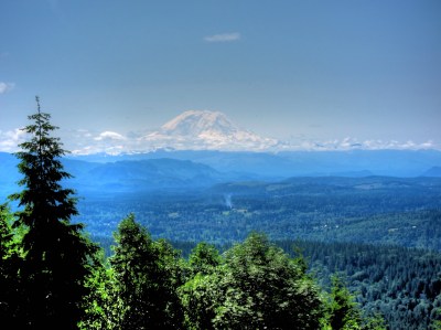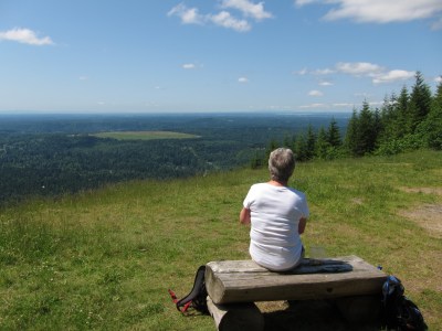 There is a hiking trail (Chirico Trail) that leads to the top, so Romola and I decided to hike it and take a look. That was quite a hike! 2 1/2 miles long, and it gained about 1,600ft in altitude. We were a’huffin and a’puffin on the way up! But once there it was a beautiful sight, with Mt. Rainier visible from the South Takeoff Zone.