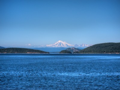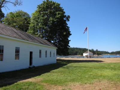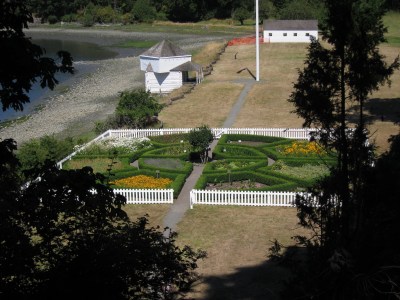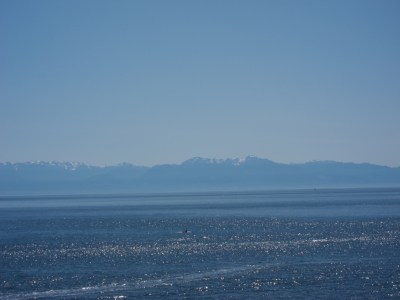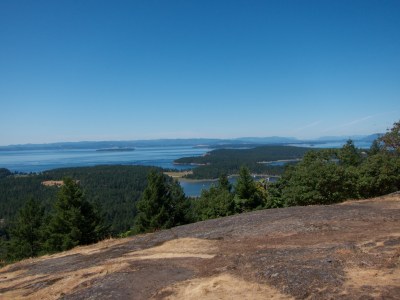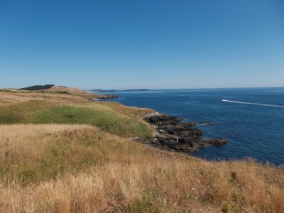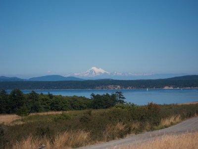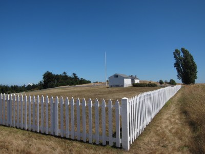 Took the ferry to San Juan Island yesterday, we wanted to see the American and English Camps, site of the famed “Pig Wars” (more below).  It was a great day, with a nice hike up Young Hill for some panoramic views.  We also lucked out and saw several juvenile bald eagles, some ospreys in a nest (through a telescope), and a pod of Orcas heading for deeper water.  Too bad I didn’t take my telephoto lens…..