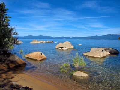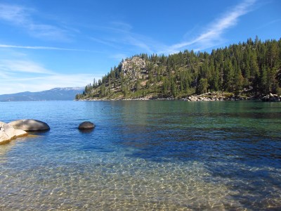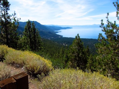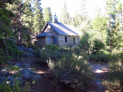 Saturday we went on a hike to Skunk Cove, a beautiful cove on Lake Tahoe. Here we found the summer home of a wealthy industrialist, who had the home — along with guest quarters, separate kitchens, etc. etc. built in 1927. Cost was no object, all the stones and other materials were shipped by boat as there was no road. The hike itself was fairly strenuous as it dropped 700 feet or so to the lake. Of course, we had to hike back uphill all the way…. and at 8,000 ft. altitude as well!