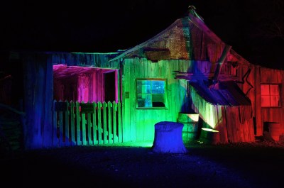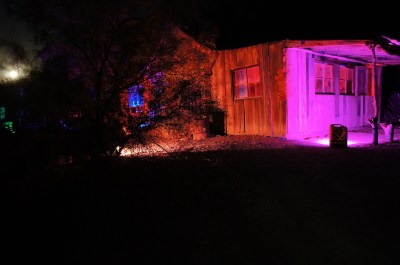 Once all the lights are in place, and the composition is set, you take a long time exposure (usually around 20 seconds) and during the time the lens is open he uses the “searchlight” to give additional emphasis to specific areas. The results are quite interesting. Here are some of my shots, taken at the Drover House in the Arboretum.