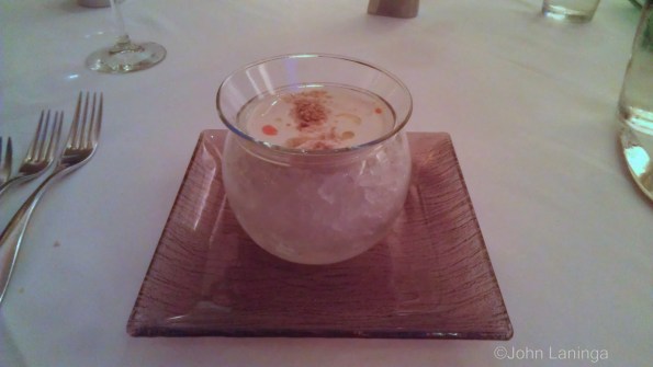 Our first course was four different ceviches.  Each was superb, the ahi tune was truly special.  The second course was a delicious tomatillo soup with wonderful accompaniments.  By now,  I realized how special this was.  After all, Steven Pyle is one of the world’s most respective chefs.  So I took out my cell phone and tried to take some pictures.
