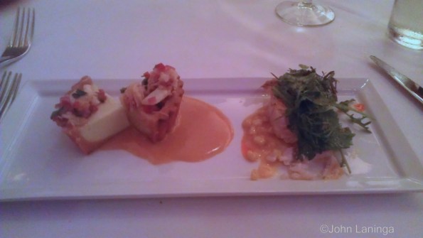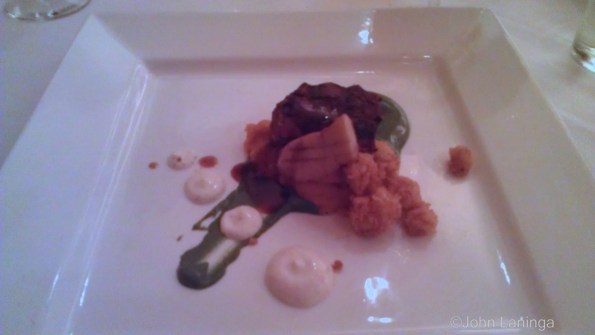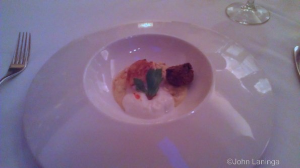 Poor light, and I didn’t want to use a flash, but I think this may serve to illustrate the extent of the menu.  So here are pictures of the last eight courses, along with what they were, at least those I can still remember.  So excuse the poor picture quality, and I just can’t remember all the names of the dishes!  And congratulations on your promotion, Tanya!