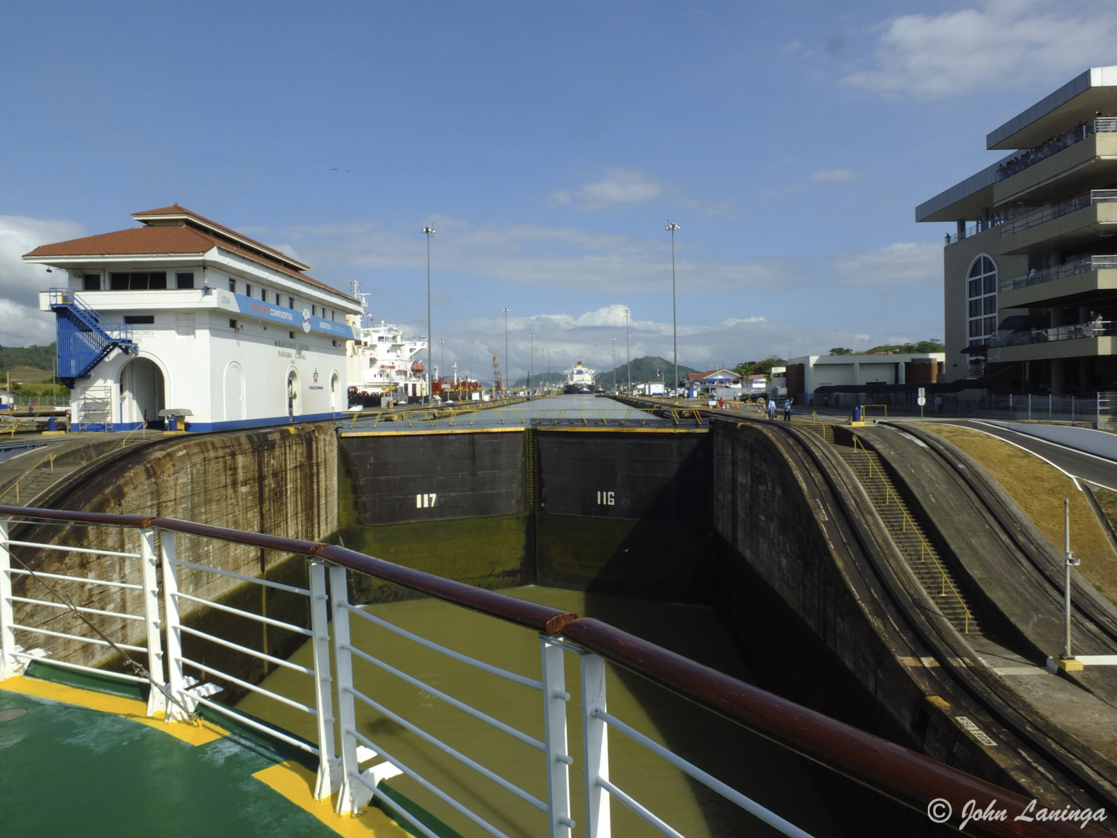 Our ship, the Celebrity Infinity, was a “Panamax” ship, meaning it was as large as was allowed. Our ship, 985 feet long, just fit in the 1,000 foot locks… with 1 1/2 feet per side!