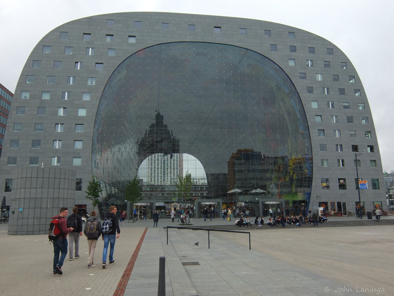 Shaped like a large Quonset hut, it has a complete fresh food market with restaurants inside, and apartments in the structure itself. Some look to the inside, some on the outside. In either case, it is a spectacular place to visit, both from an architectural point of view or just to sample and eat the large variety of foods available.