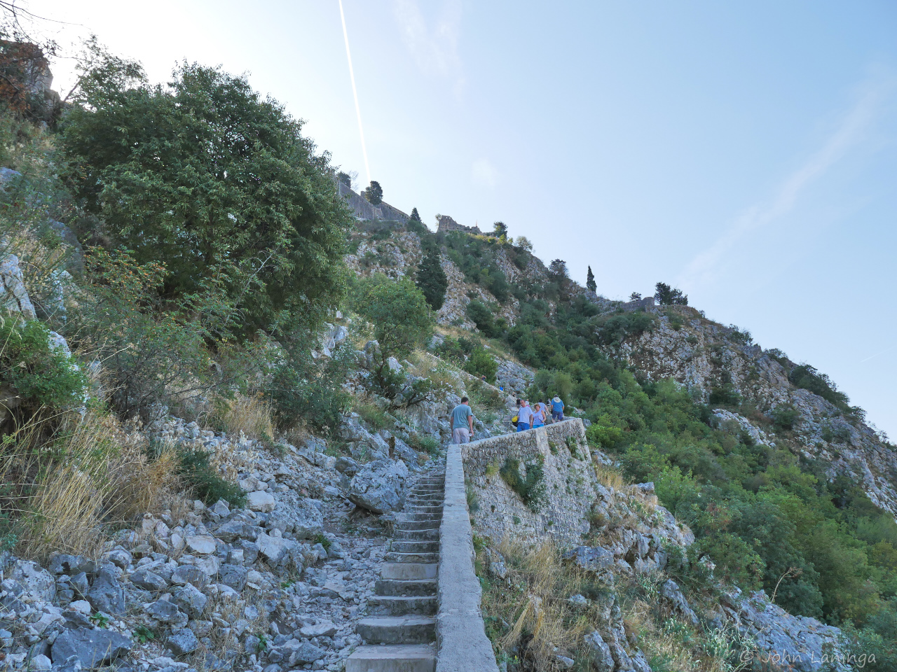 One of the highlights is the 2.8 mile long wall. Much of this is restored, and walkable, up to the old fort. This takes 1,320 steps, and gives a good test of heart and legs. Of our group, Romola and I were the oldest to reach the top. Yeah!