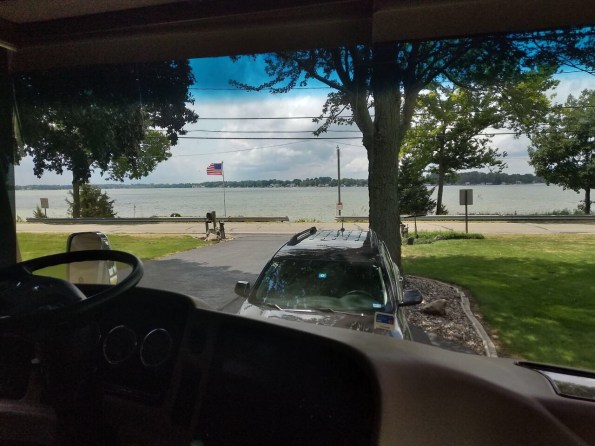 Looking over the lake from inside our motor home