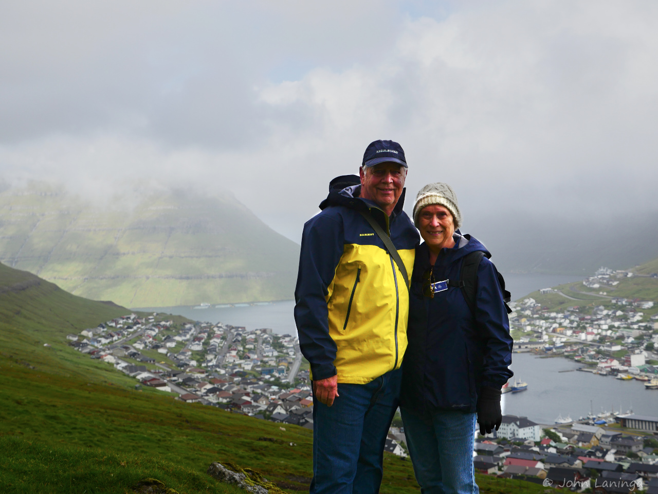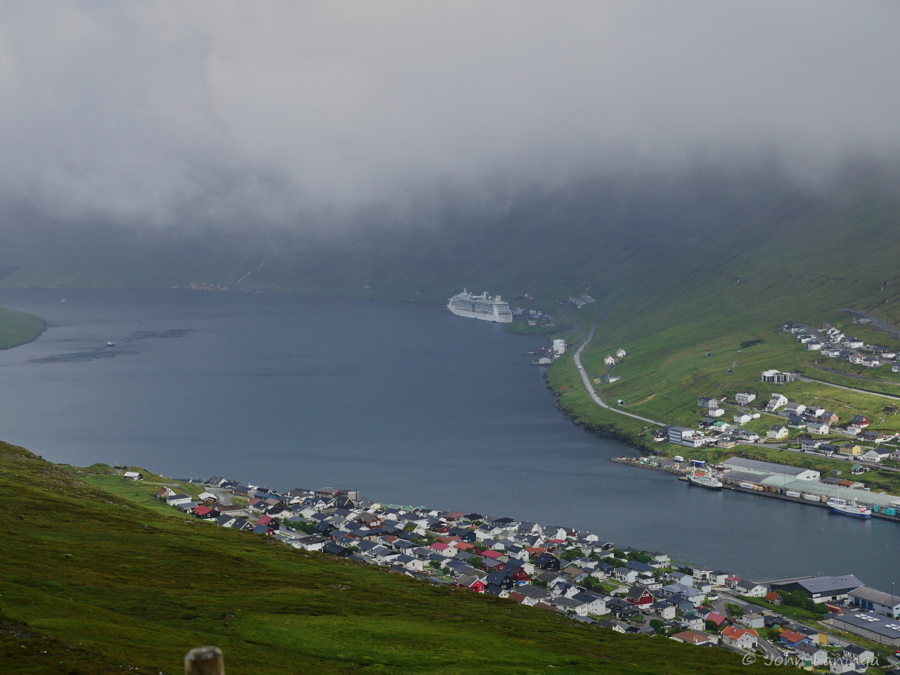 The main industry is fishing and lamb. The port city of Klaksvik is small, and not set up for tourism. But we had an excellent hike, about 5 miles up to a viewpoint that was some 1300 feet elevation gain. Gotta work of the calories somehow!
