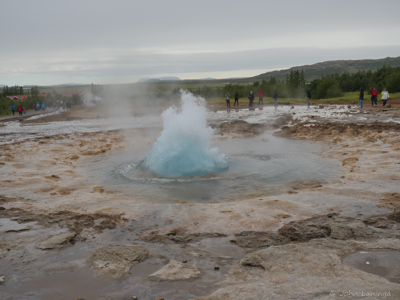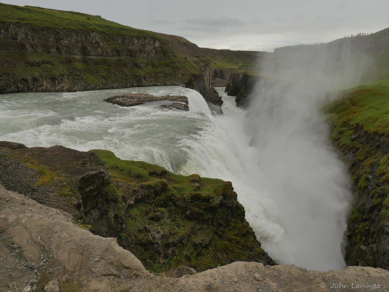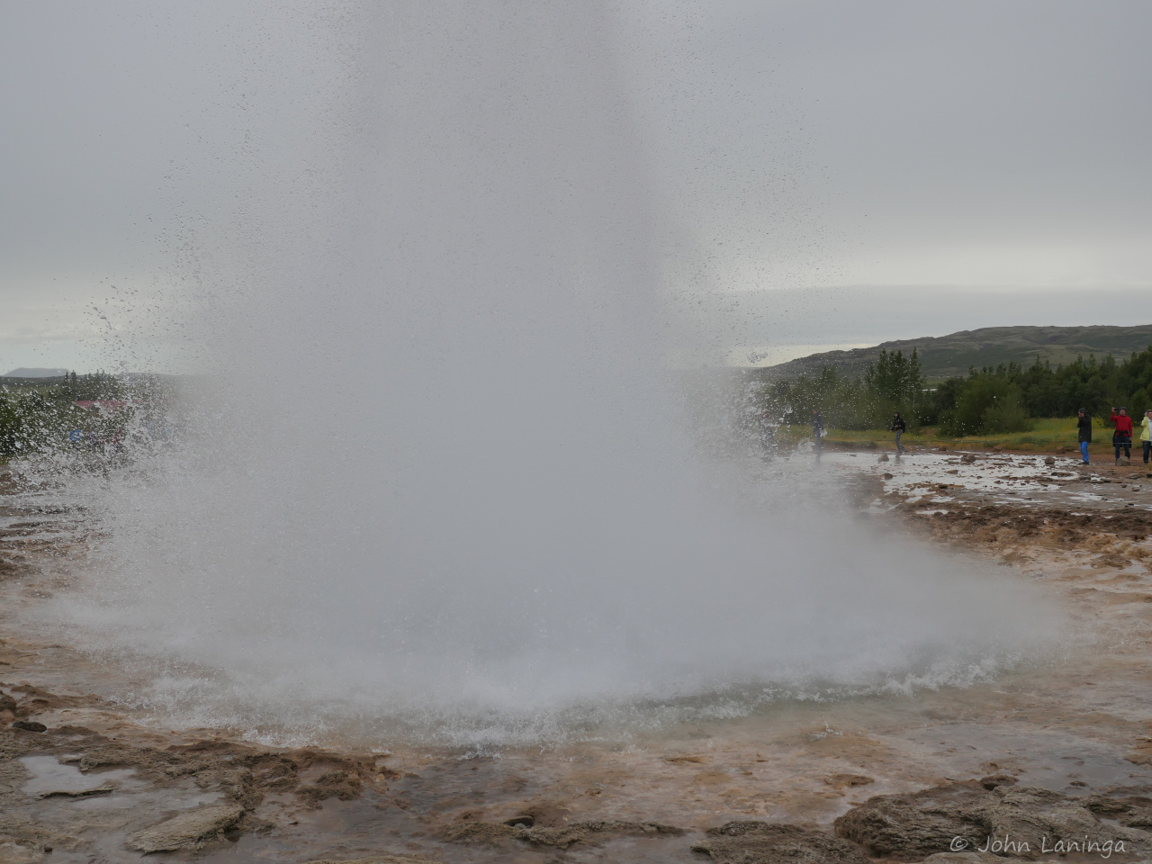 Our excursion took us to the faultline itself, where we were able to walk from America to Europe! Then we visited some of the thermal plants, the spectacular Gullfoss waterfall, and the Strokkur Geyser. Smaller than Old Faithful, but much more active.