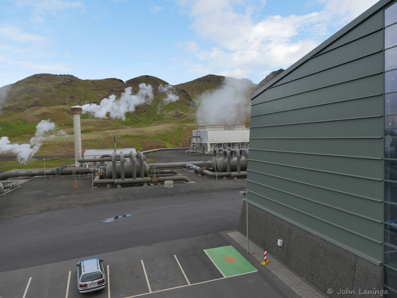The thermal plant was very interesting. Here, they tap some 2 miles down into a volcano, releasing hot water and steam. The steam is used to generate electricity, and hot water used to heat glacier runoff and pipe it to Reykjavik, some 27 kilometers away. There it is used for heating, as well as hot water for household use. The remaining hot water is used for heating the streets, and eventually to heat the ocean at a beach… allowing swimming in arctic waters.