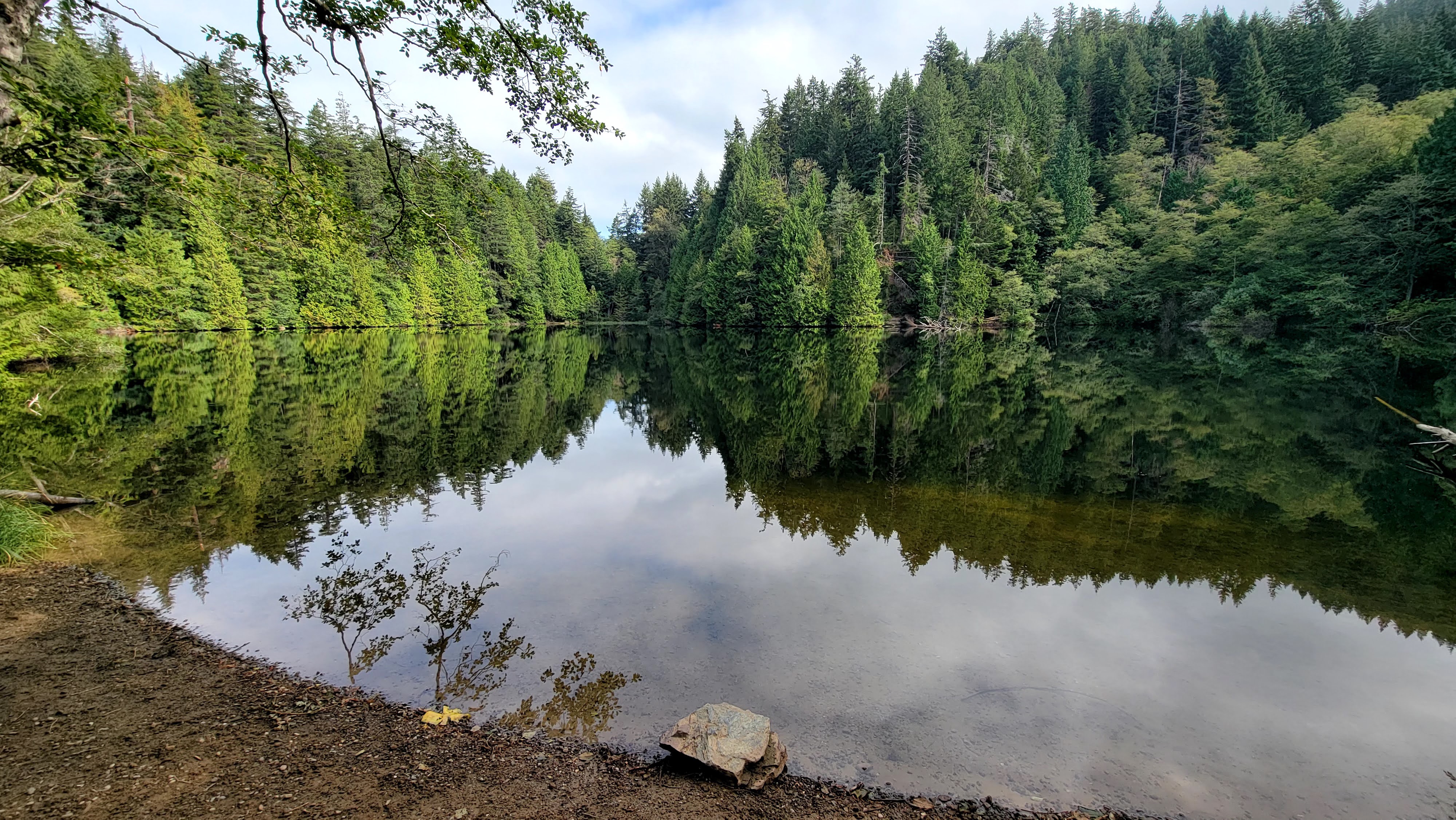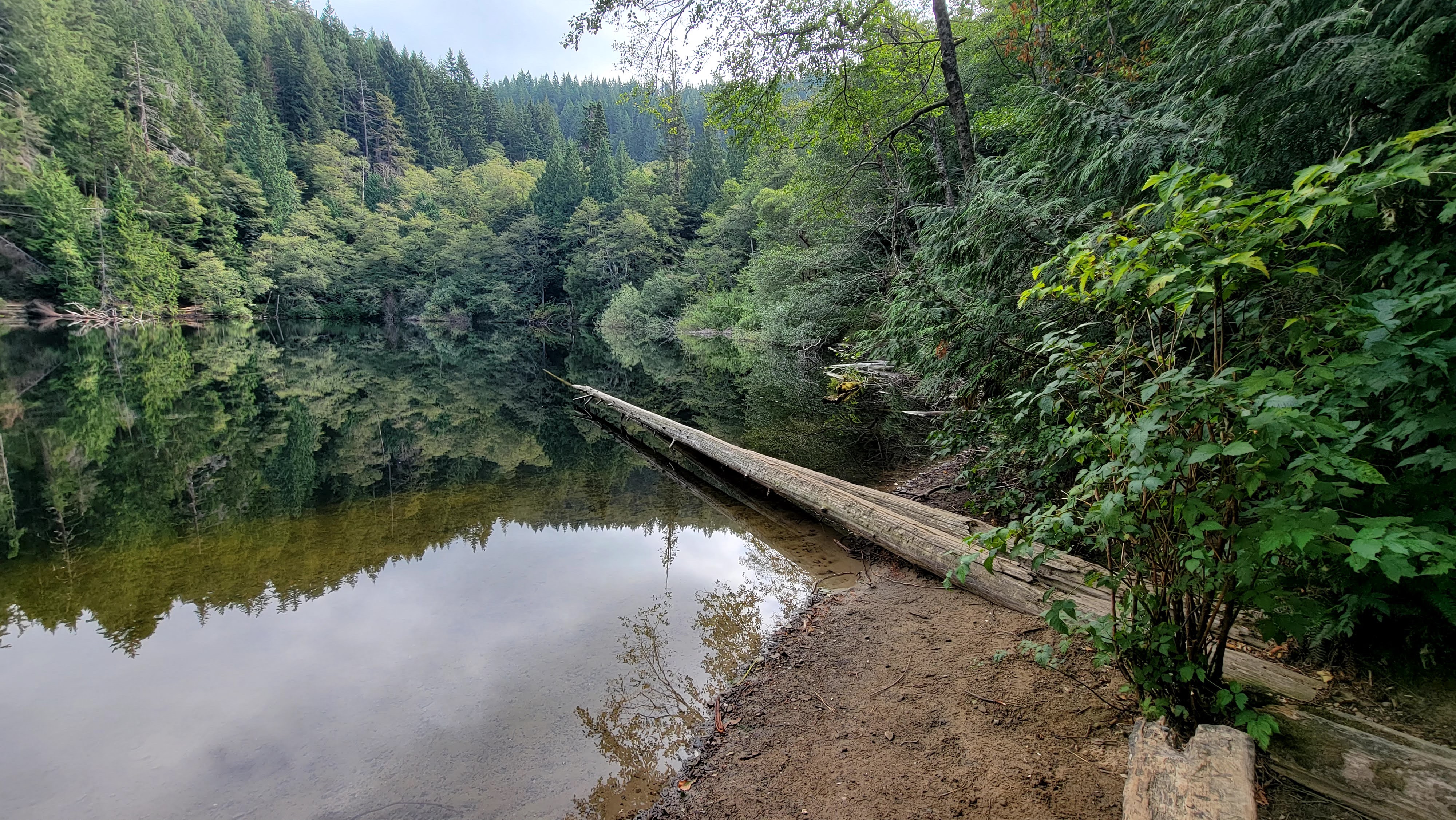 Fragrance Lake: We hiked this popular trail for the fourth time. And probably the last. It starts at sea level and goes for 2.5 mile to the lake at 1,200 ft elevation – all uphill (see road level photo). Maybe we’re getting too old for these hikes.