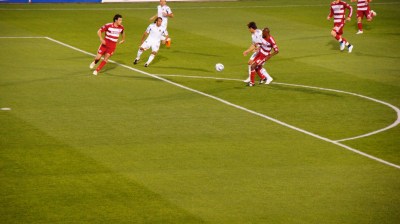 The stadium is sponsored by Pizza Hut. It is a new stadium, well done, very fan friendly. There was a reasonably large crowd, cheering on the local team. Very upset when a favorite layer was red carded and kicked from the game. Dallas survived to a 1 – 1 tie.
