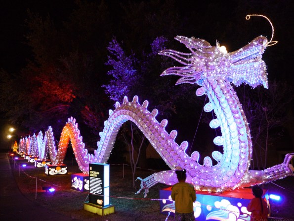 Some pictures taken at our family visit to the Chinese Lantern Festival near downtown Dallas. It is spectacular; it takes over three months to make the exhibits. Just imagine all the steel wire and colored fabric used!