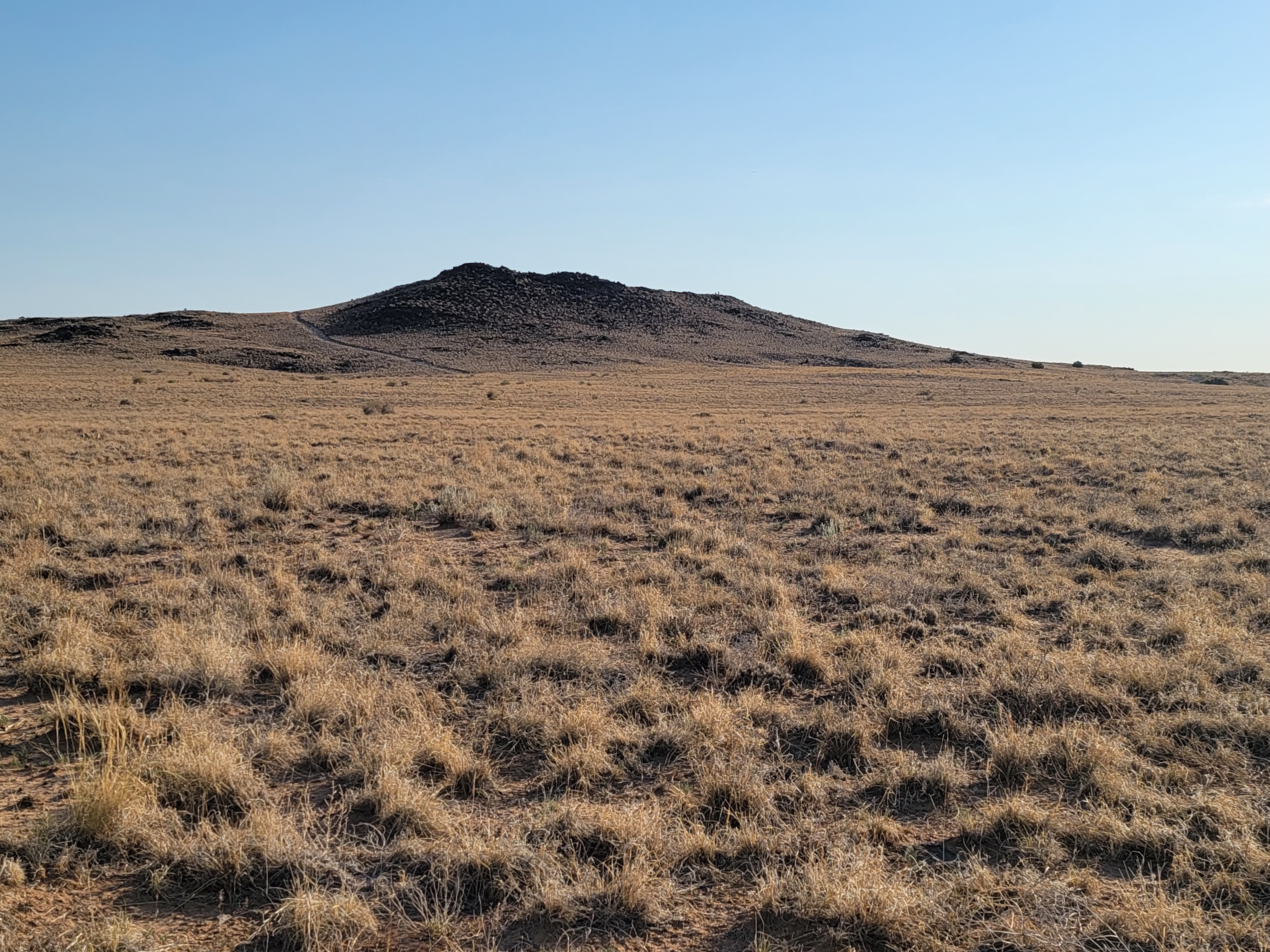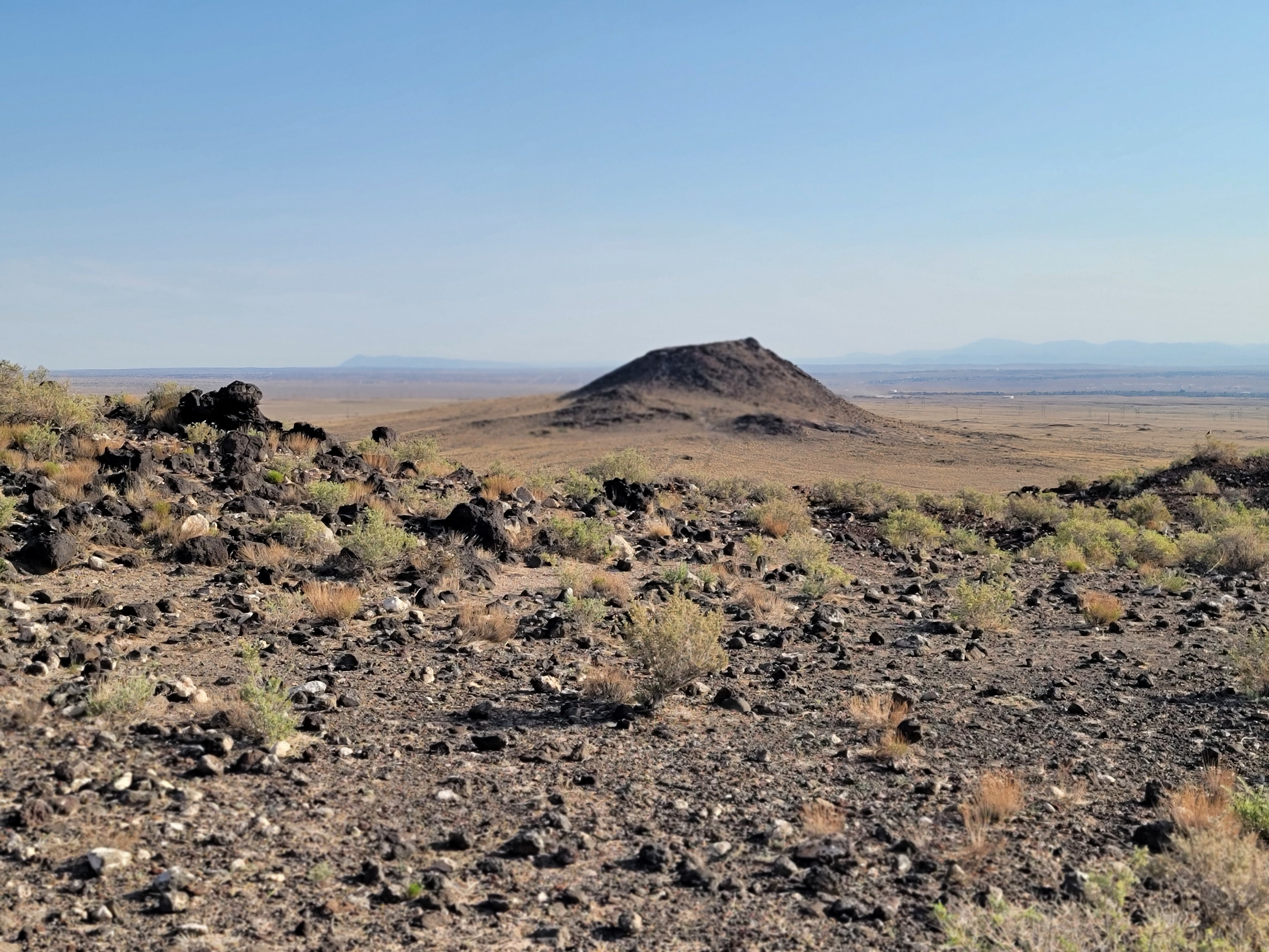Like so much of the country, Albuquerque is in a record setting heat wave. So we left early for our hike, and found one close to where we are parked. We hiked the Volcano Trail in the Petroglyphs National Monument early in the morning. The three dormant volcanoes (JA, Black and Vulcan) we walked around or over are about 130,000 years old