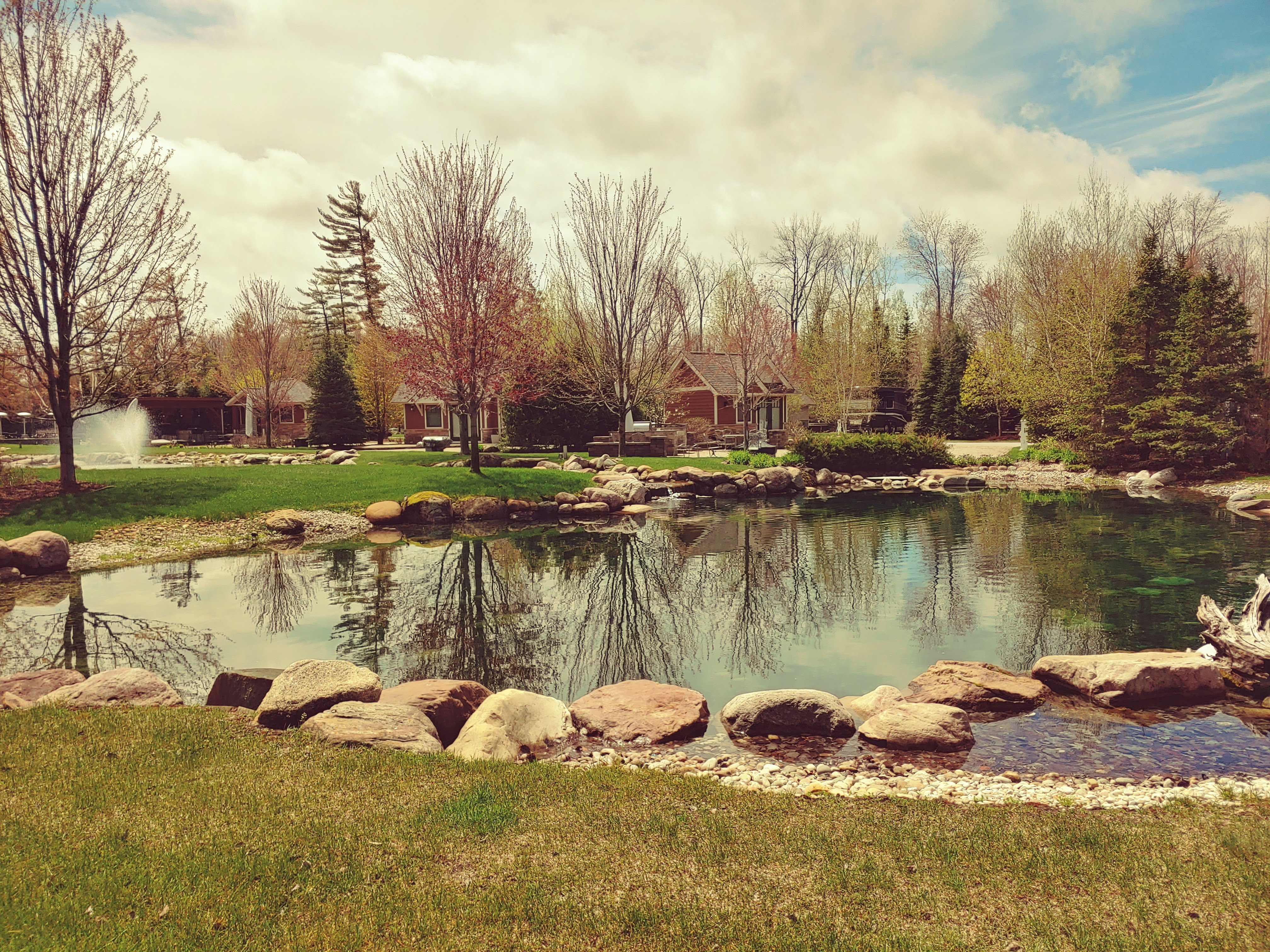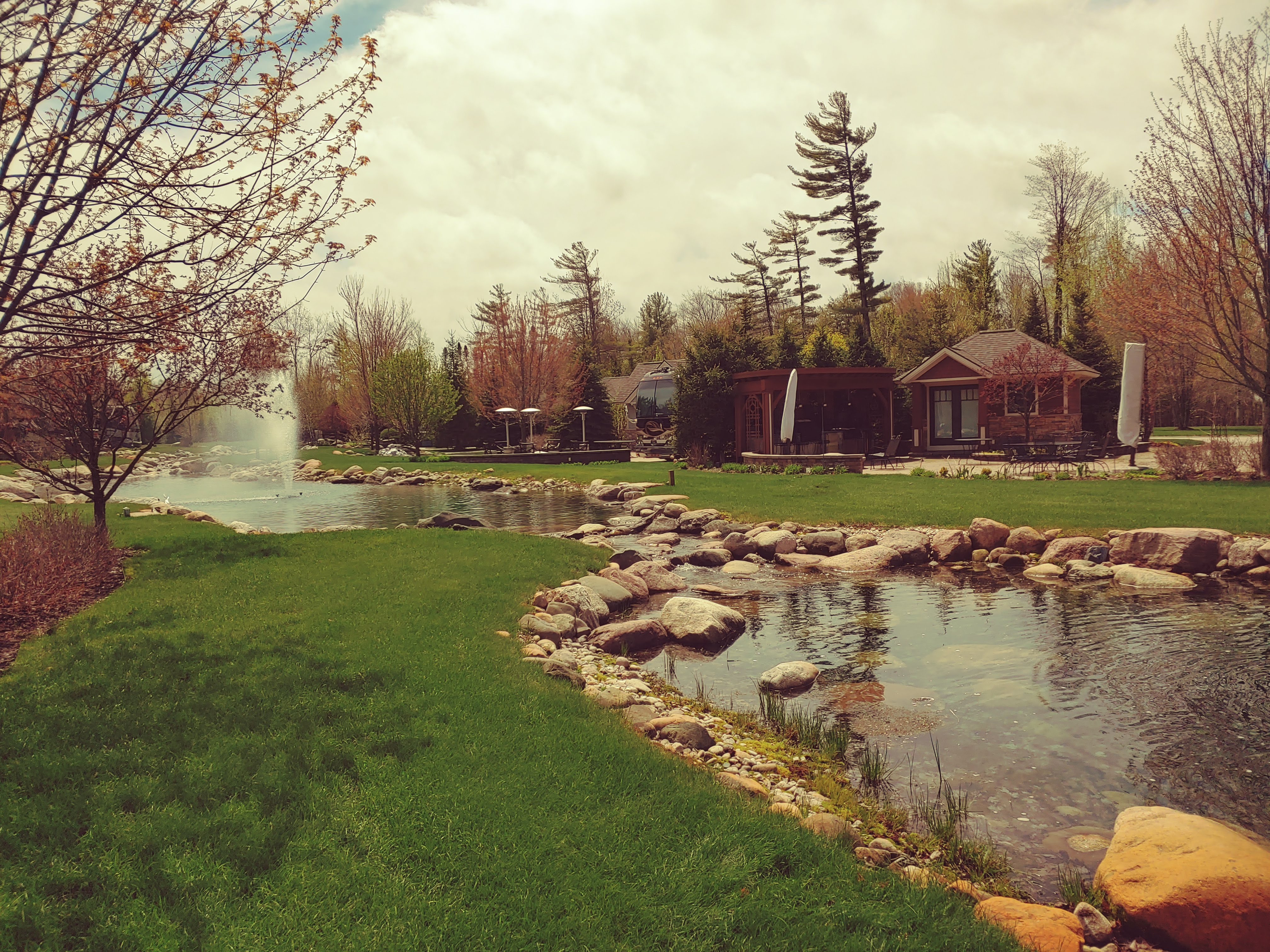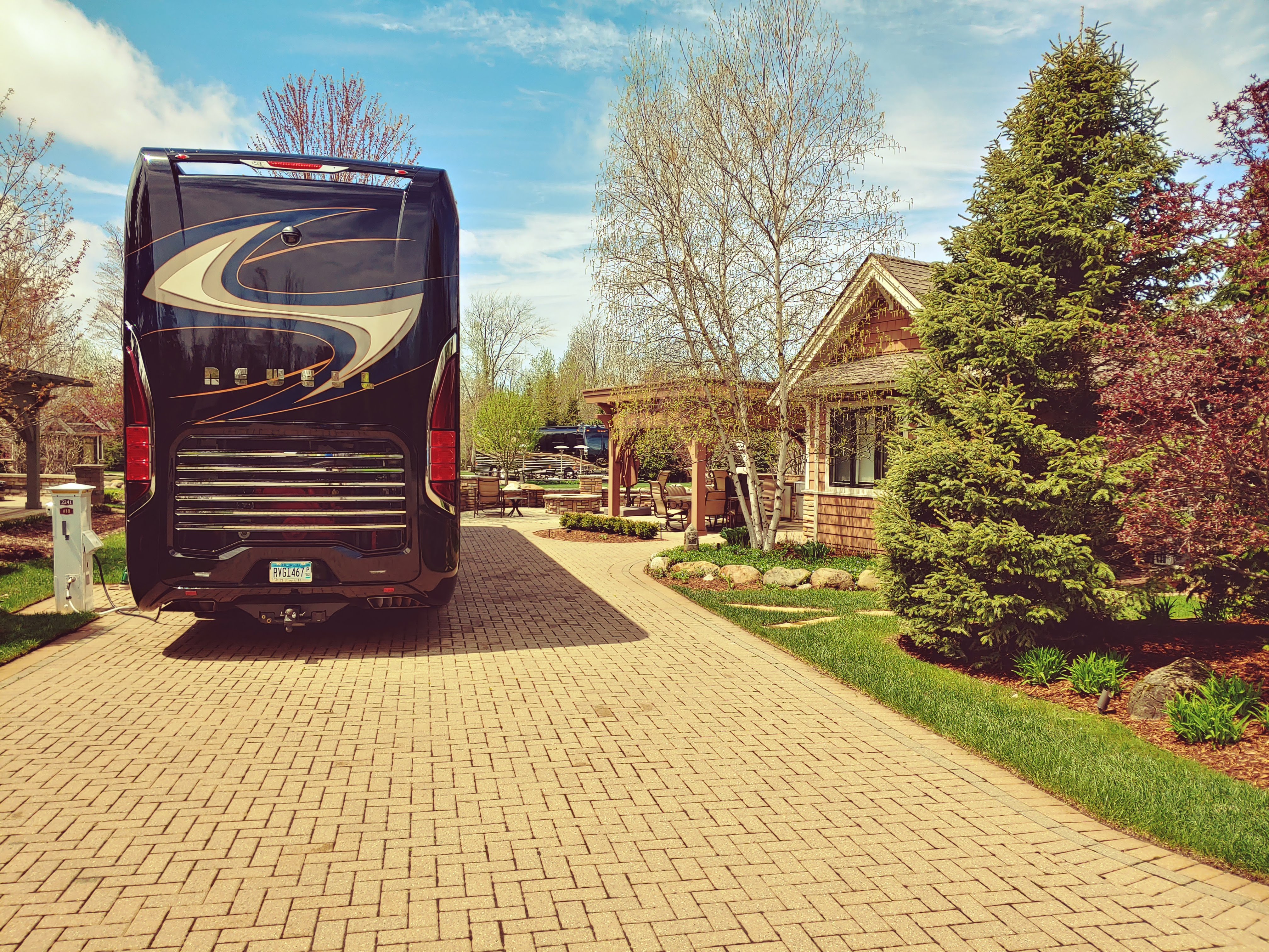 So we were lucky enough to win a 4 day pass to stay at the Hearthside Grove RV Resort in Petoskey, and since we were heading that way anyway, good deal! So we checked in and were assigned a place. And what a place! Beautiful grounds and facilities, an enormous club house with theater, bar and gourmet kitchen. Tennis courts, pool, hot tub. And RV sites!