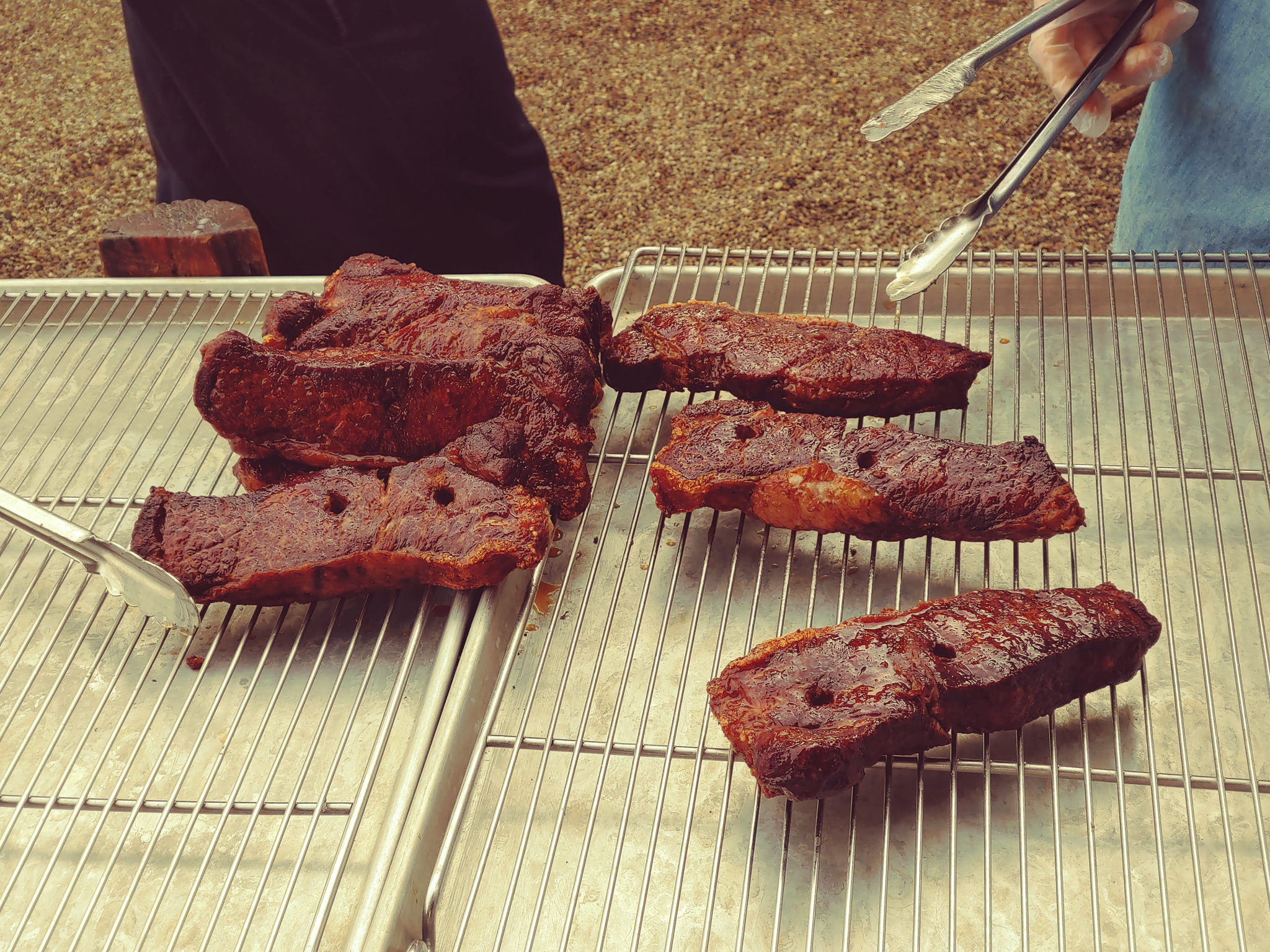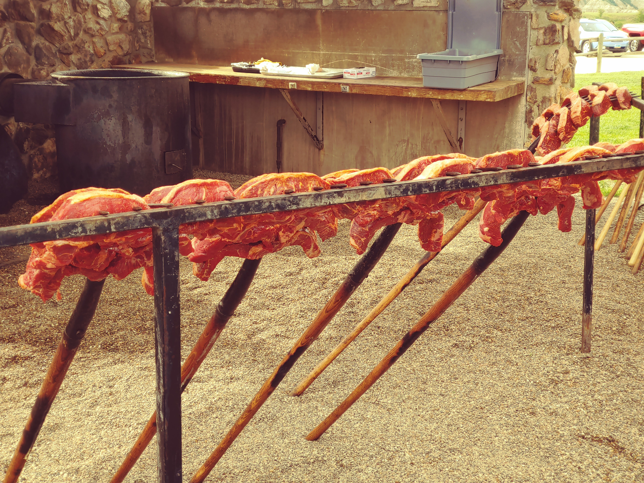 We had dinner at the Pitchfork Fondue, where they take a 12oz NY strip steak, put it on a pitchfork, and fondue it in hot oil. It is then served with all the trimmings, buffet style. We were impressed with the quality of the food, and the steak in particular. But we ate quick as it was cold and very windy.