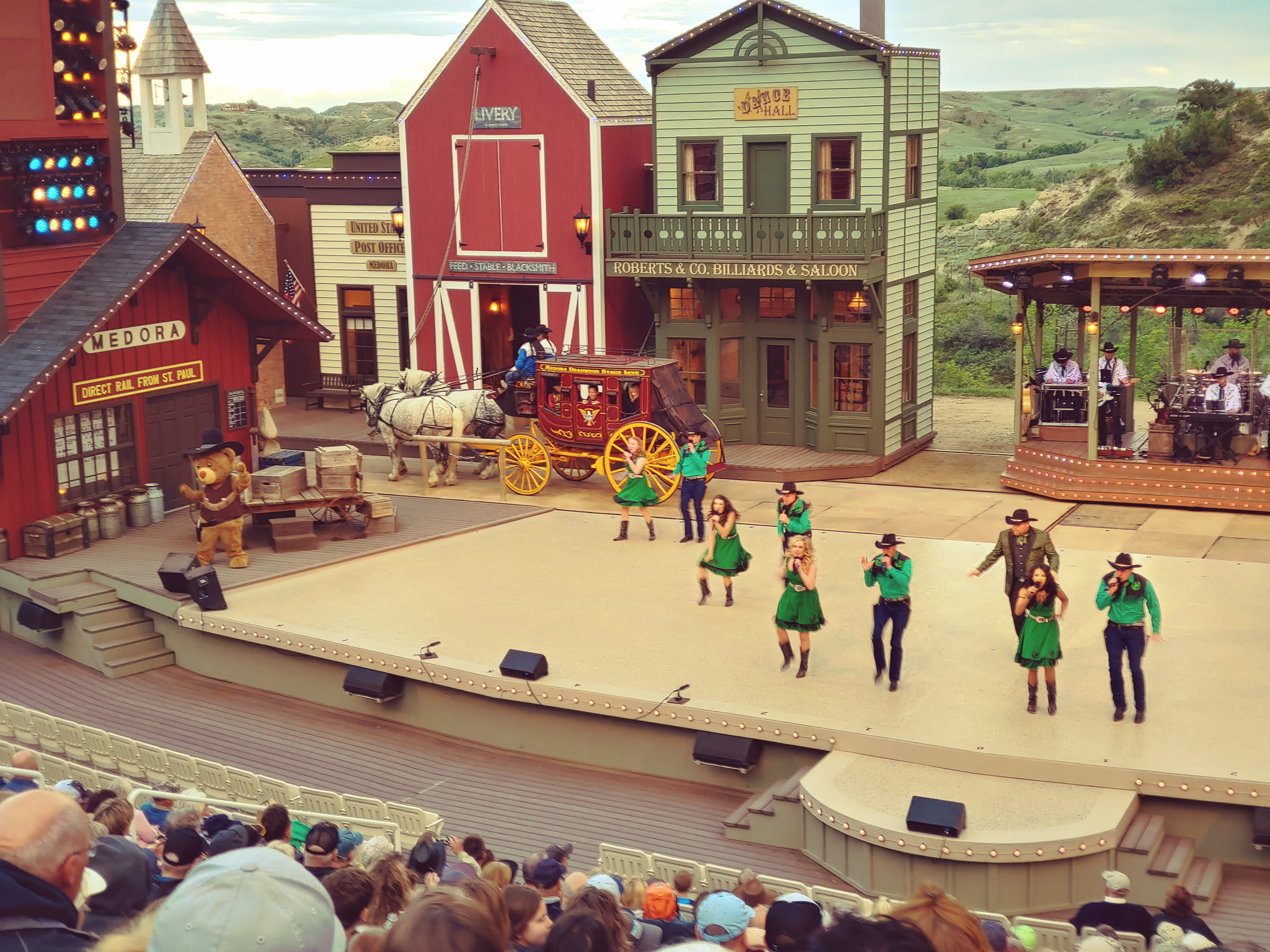 We also bought tickets to the Medora Musical, a huge outdoor amphitheater where an evening’s entertainment of song, dance and comedy made for a pleasant evening, all in a magnificent setting. The setting sun in particular lent to an impressive performance.