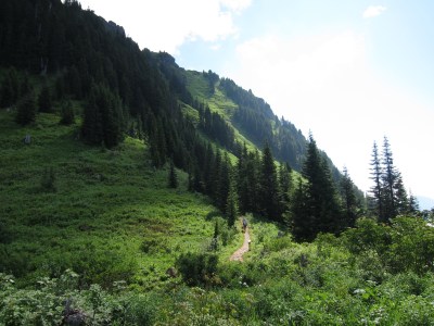 Sunday was our last day in Washington, and it was nice and sunny, so we thought a nice hike would be in order. So did half of Seattle! The Denny Creek parking lot was full and overflowing down the road. We went anyway, and it was like walking in a city! However, once we got past the Sliding Rocks, the trail got rough and number of people thinned out considerably.