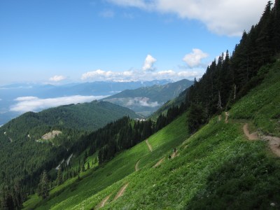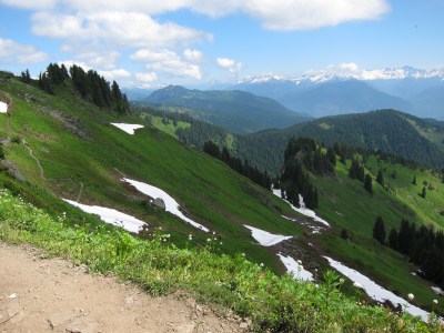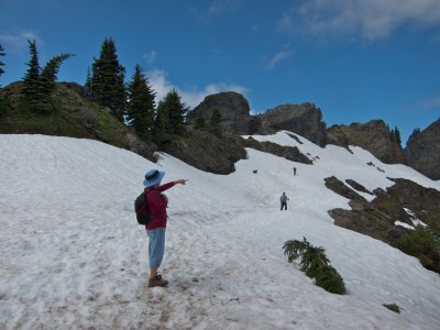 But once on top of all the switchbacks it was magnificent. We had to traverse snowfields, and some rather dangerous sections, but the view was worth it. This has been one of the most spectacular hikes we’ve done in the NorthWest.