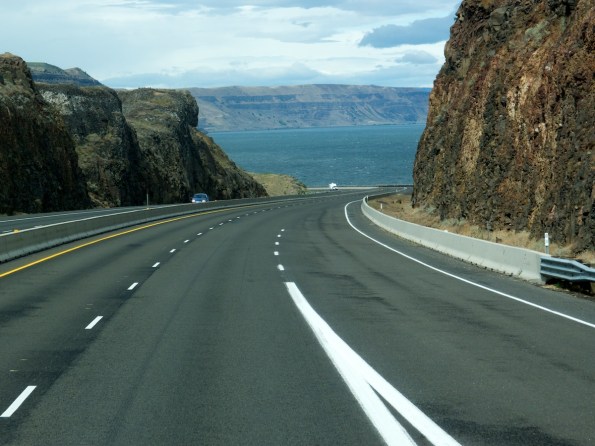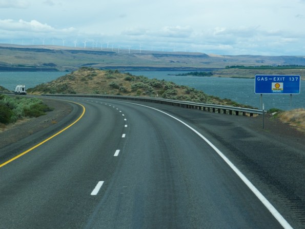 Along the Columbia River. Note the white caps, and the wind mills… tough driving!