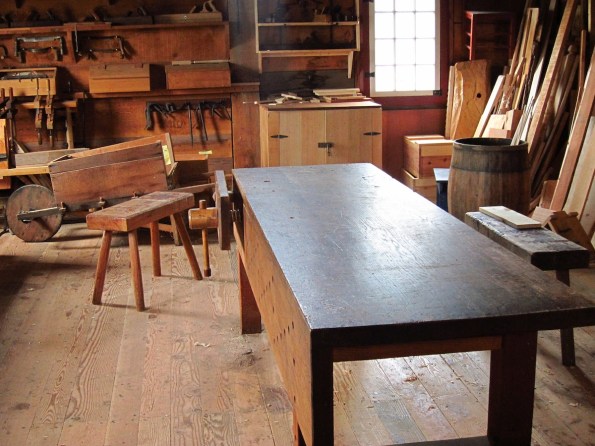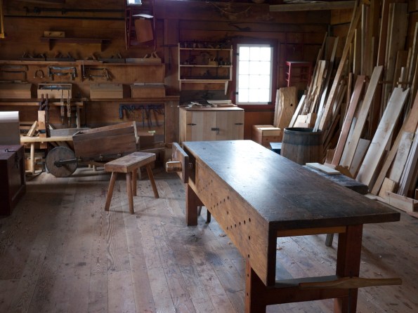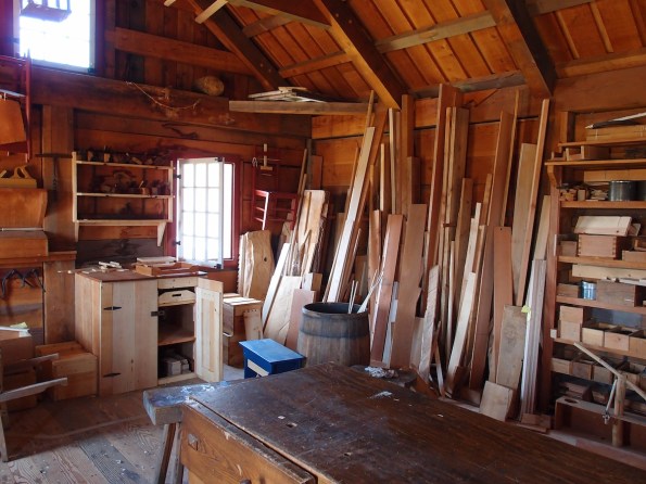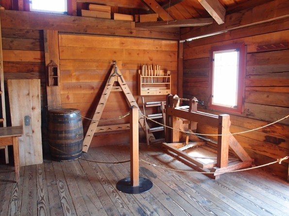 Back in the day, the carpenter was one of the most important tradesmen at Ft. Vancouver. He was responsible for building pretty well everything, from the buildings themselves, and cradle to casket. Compared to the fort itself, the shop takes up only a small space, but a lot of work was done here. And all with hand tools, no power equipment during the early years.