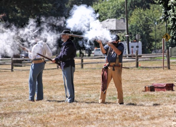 Last week was the Grand Finale of this year at Fort Vancouver. It is an evening presentation, with interpreters depicting life from the 1700’s to present day. Visitors were encouraged to walk down a timeline of period re-enactors, from WW2 down to the Oregon Trail days. I was in the 1870’s group, as a soldier fighting in the Indian war.