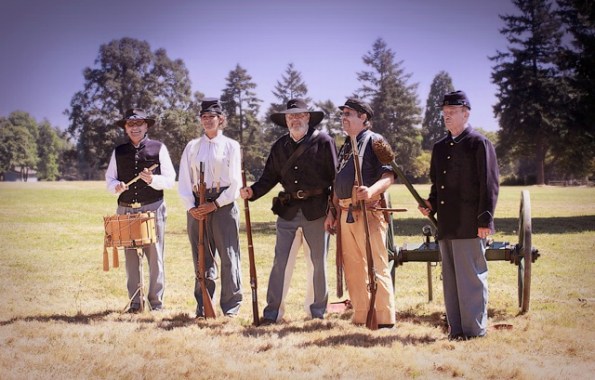 Our small but representative group – drummer, 4570 rifle, 1861 Springfield (me), late 1700’s muzzleloader, and canon crew.