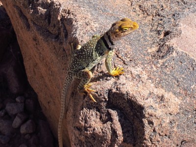 A collared lizard watches us head back