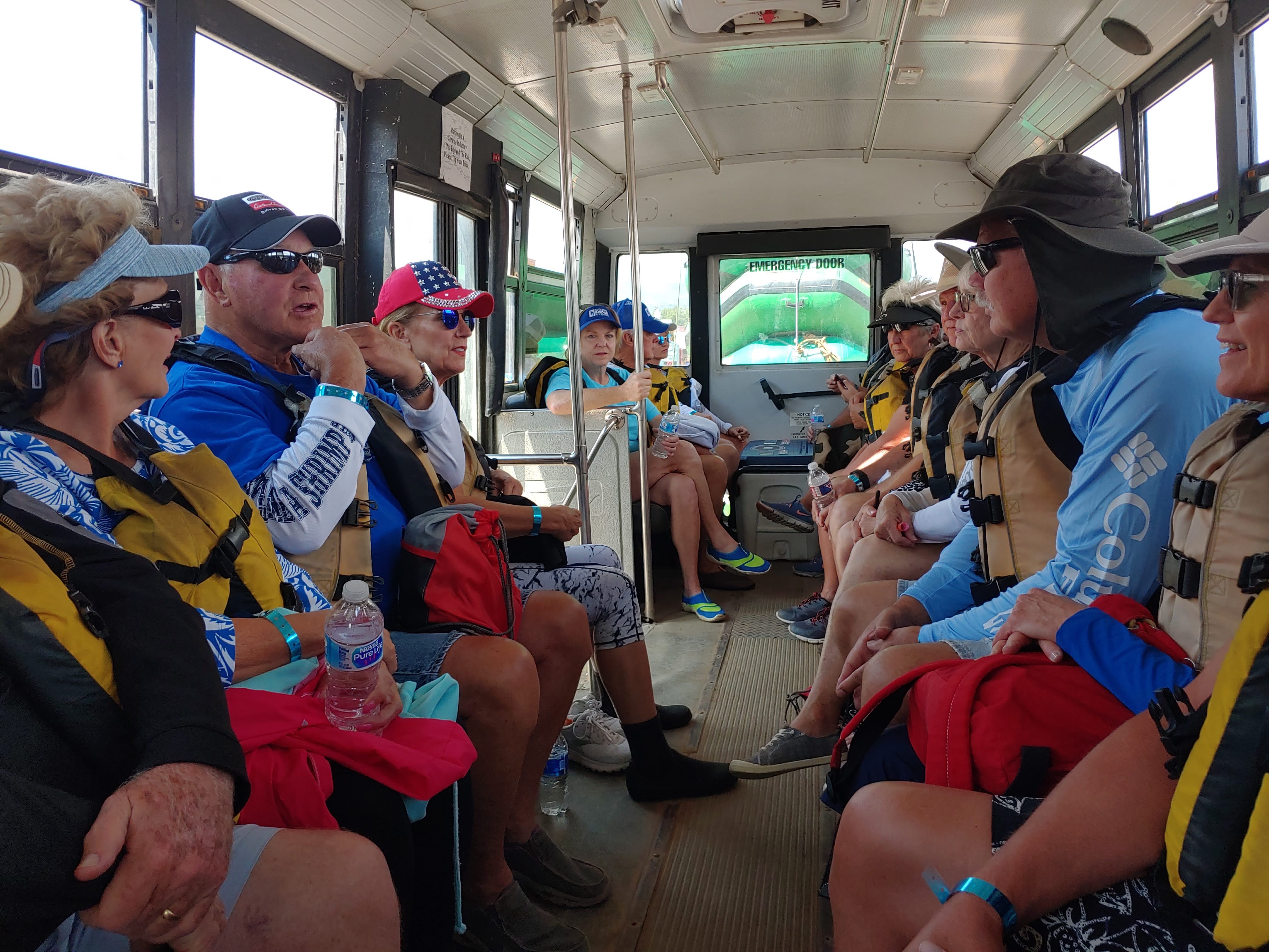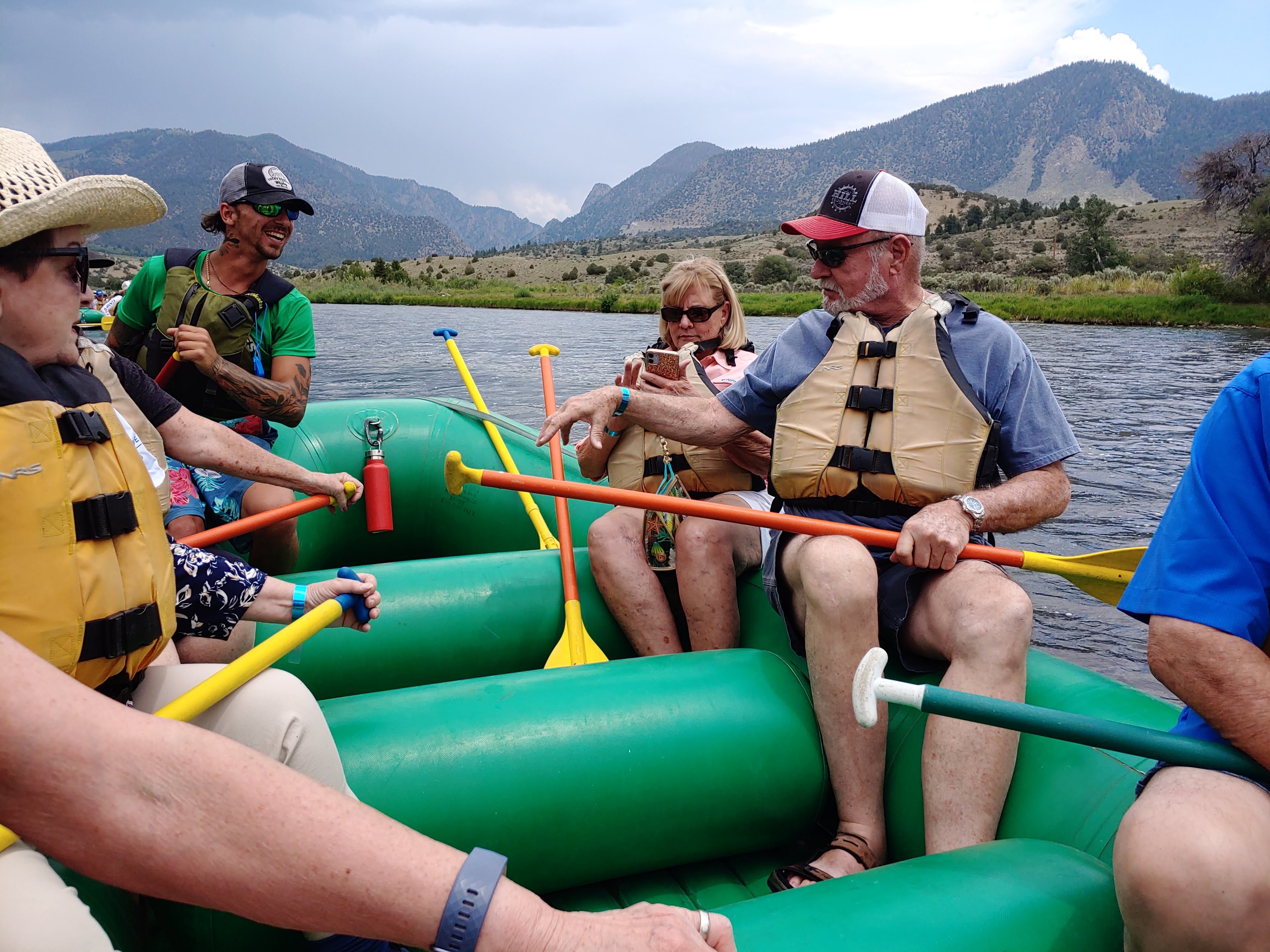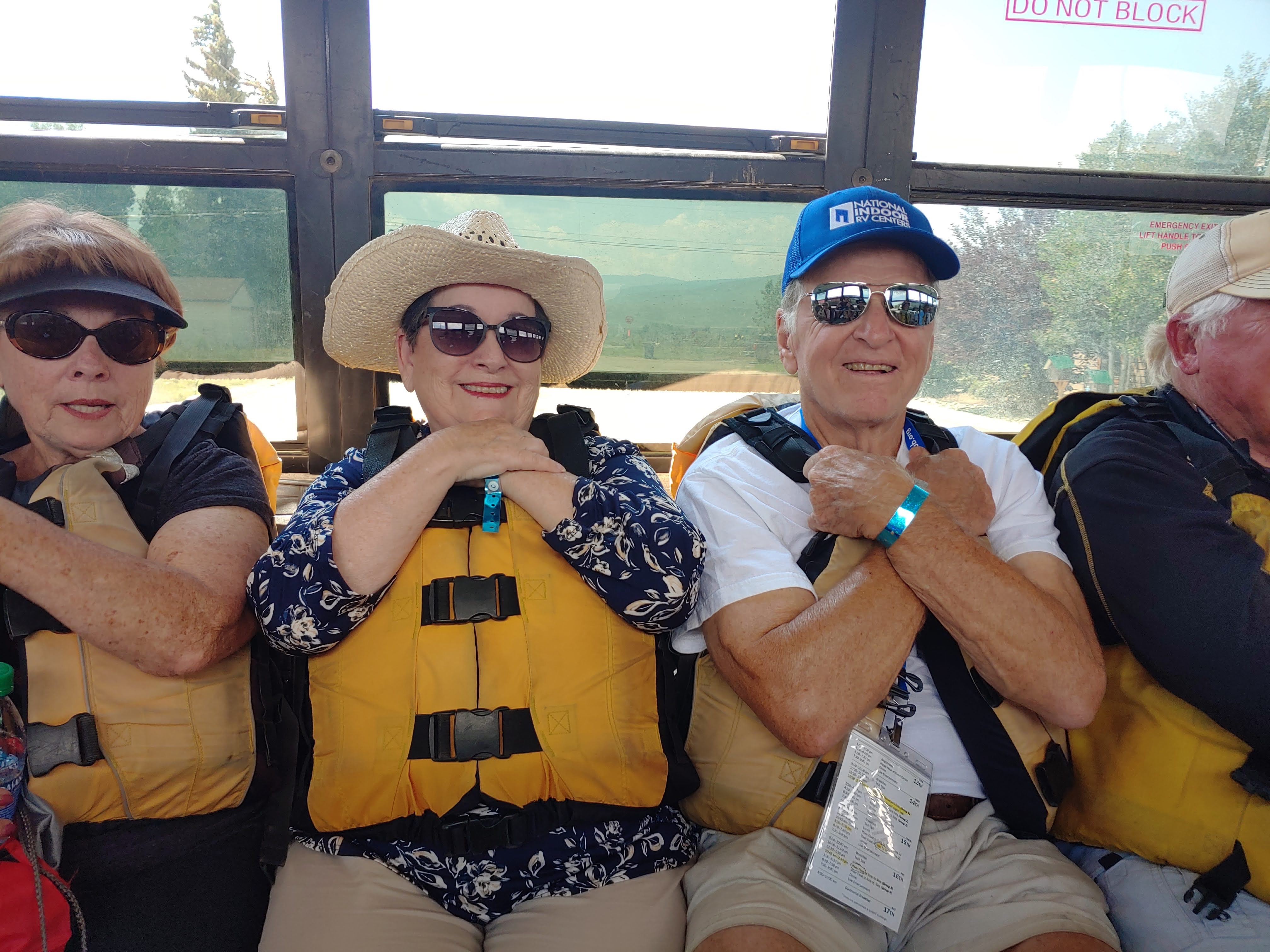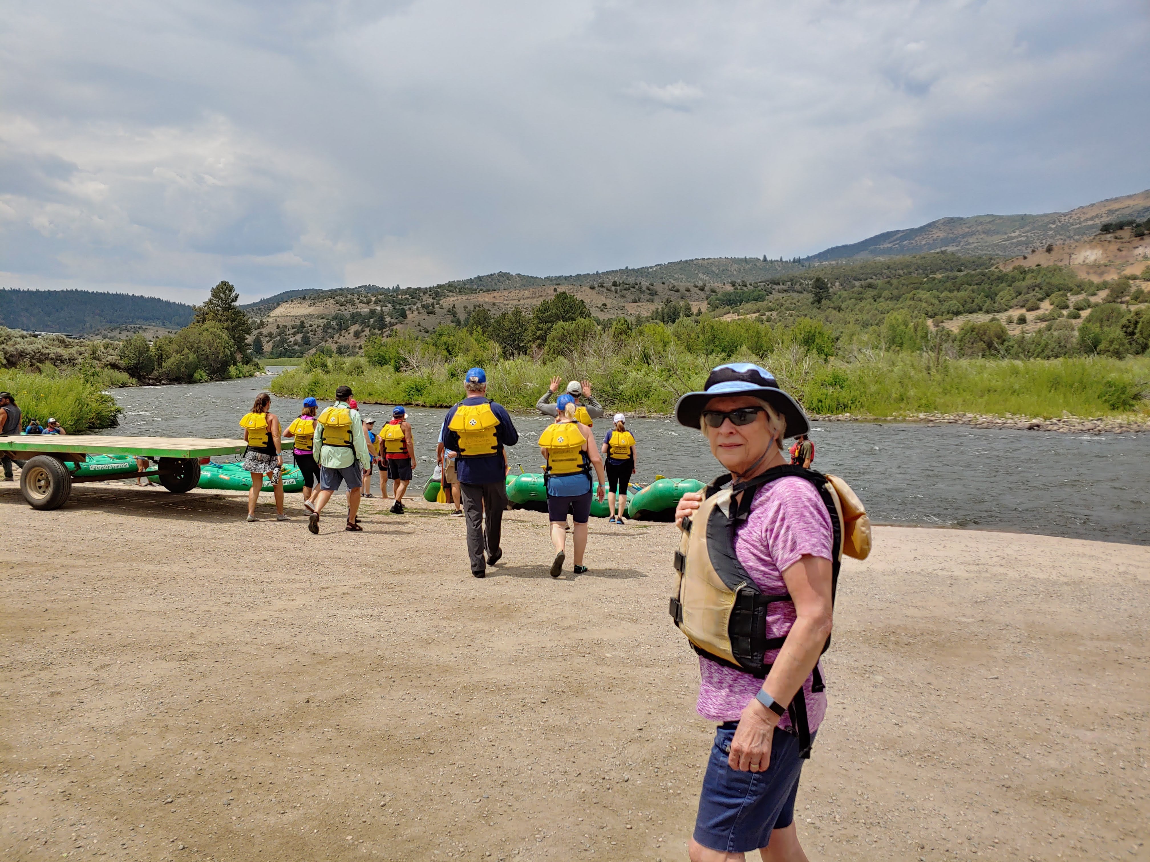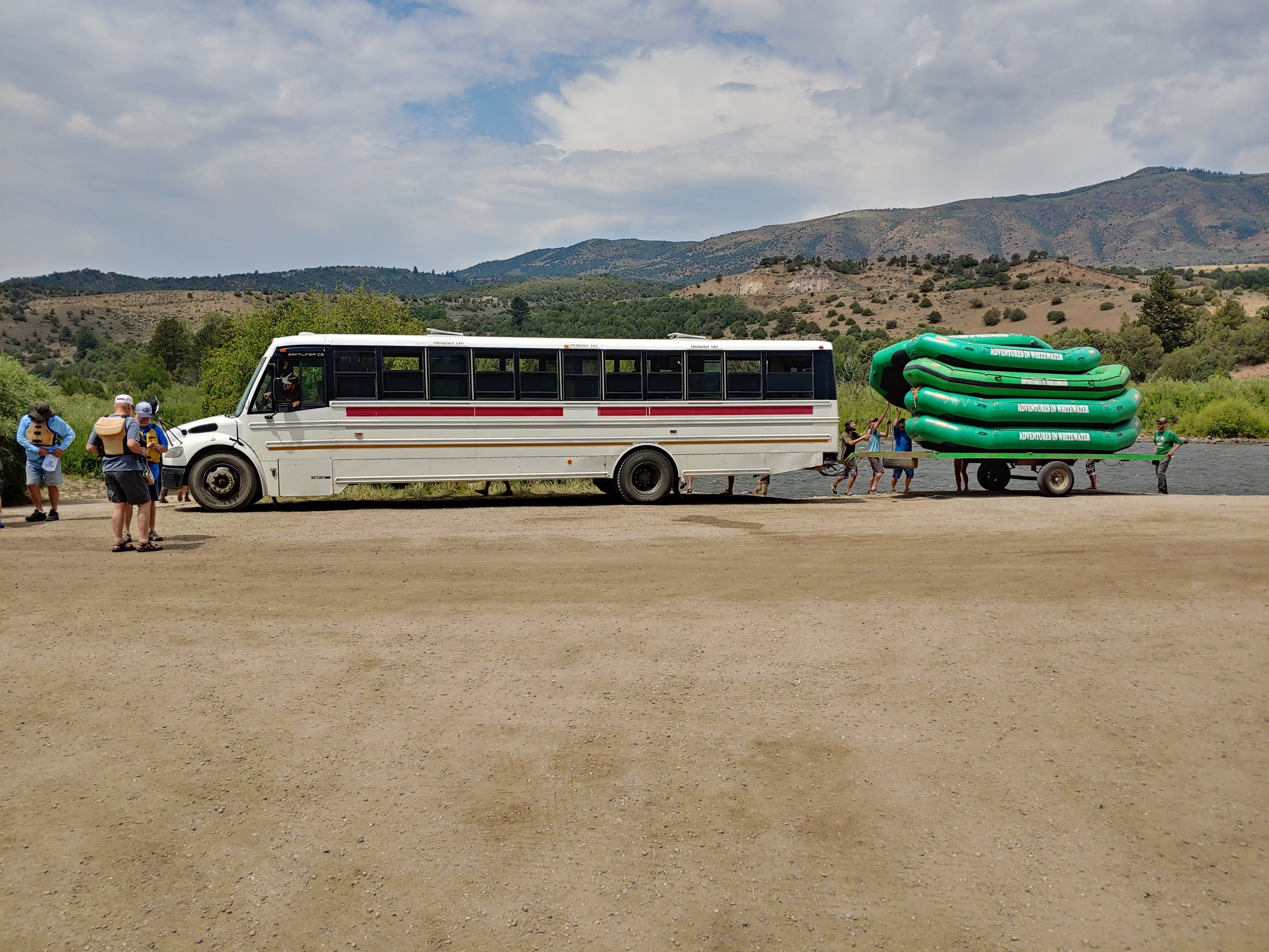 The third day of the AIM rally had us going for some white water rafting on the Colorado river. First was a bus drive to the rafting company headquarters, where we were outfitted with most fashionable PFD (can’t call them life vests anymore). From there, a converted school bus took us along some bumpy roads to the raft launching area.