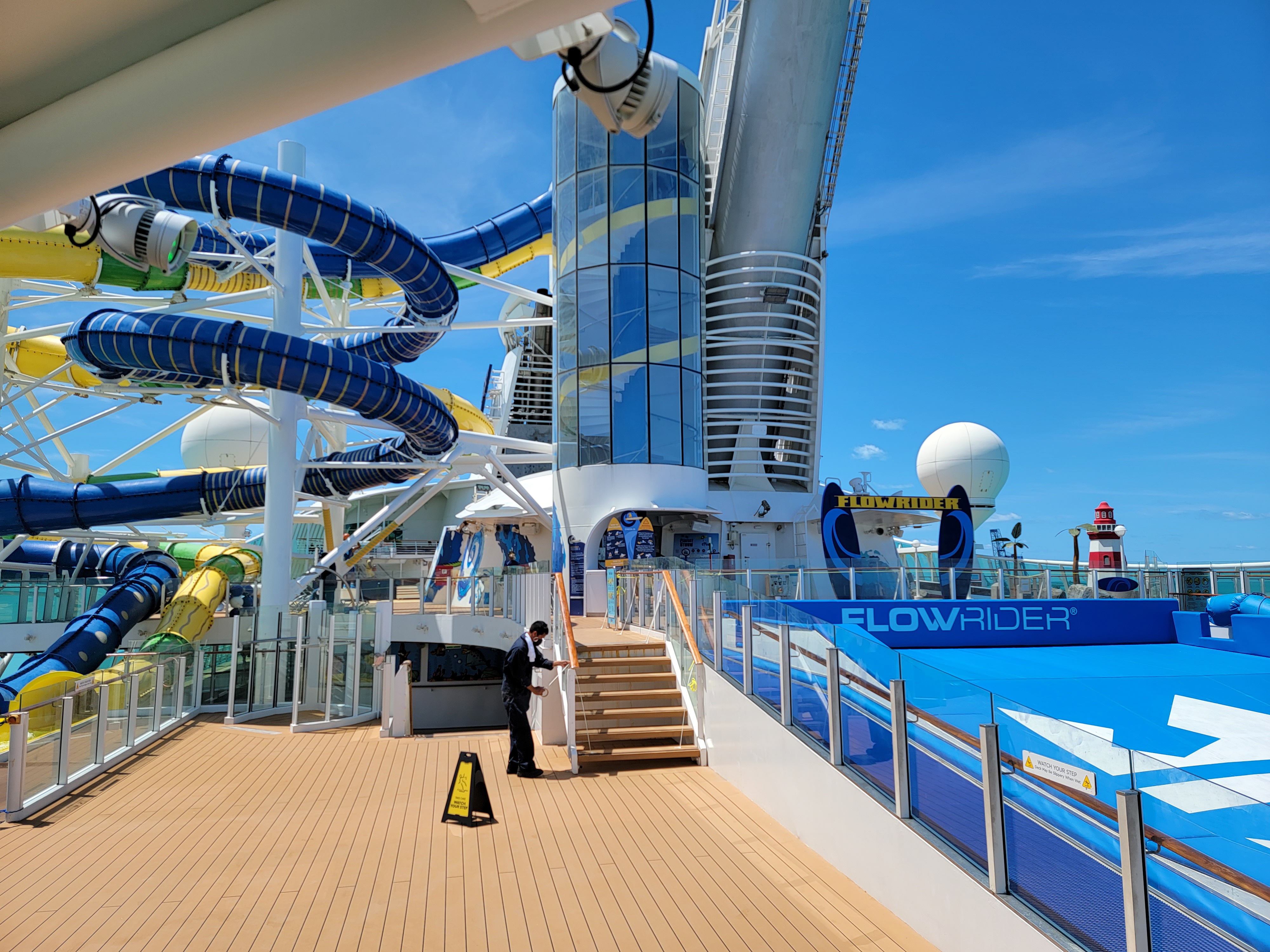 The ship was the Royal Caribbean Adventure of the Seas, a class of ships we were quite familiar with. The crew appeared very pleased to be back, and we were treated very well. The food was good, although we felt it was a little below what we were used to. But Romola and I each managed to gain 5 lbs, so it wasn’t all bad!