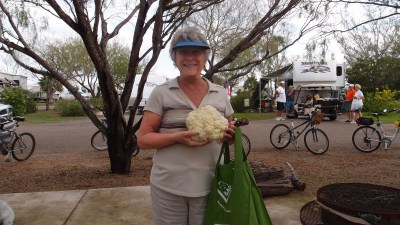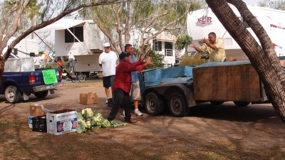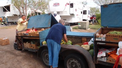 Once a week, the veggie man comes with fresh produce from Mexico. Prices are reasonable and the produce is very fresh. It is very popular with the locals; people line up waiting for him to show up. The trailer may be old, but it is loaded with fresh goodies!